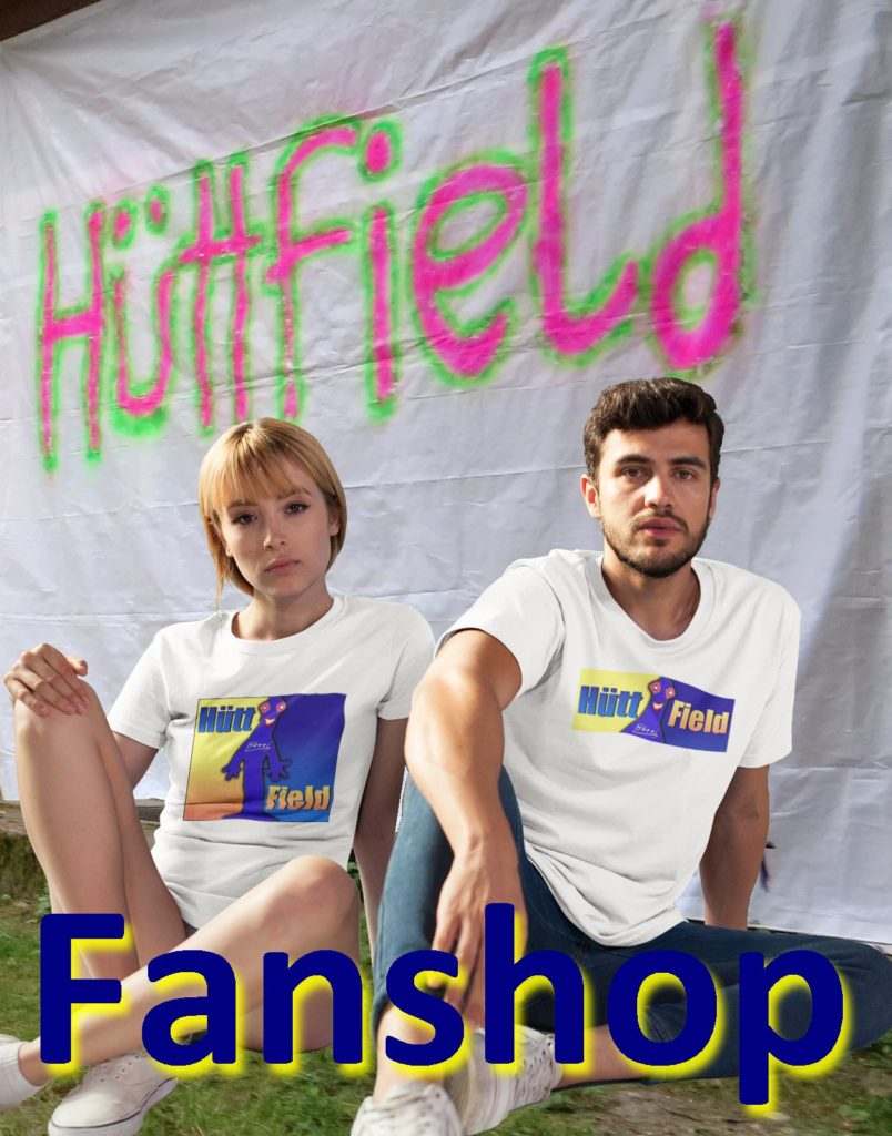 Das hat die Welt gerade noch gebraucht: einen Hüttfield-Fanshop! T-Shirts, Pullover, Tassen, Beutel und noch mehr Dinge, die eigentlich niemand braucht. Natürlich könnt Ihr die Artikel dort noch bearbeiten und z.B. die Farbe anpassen usw.